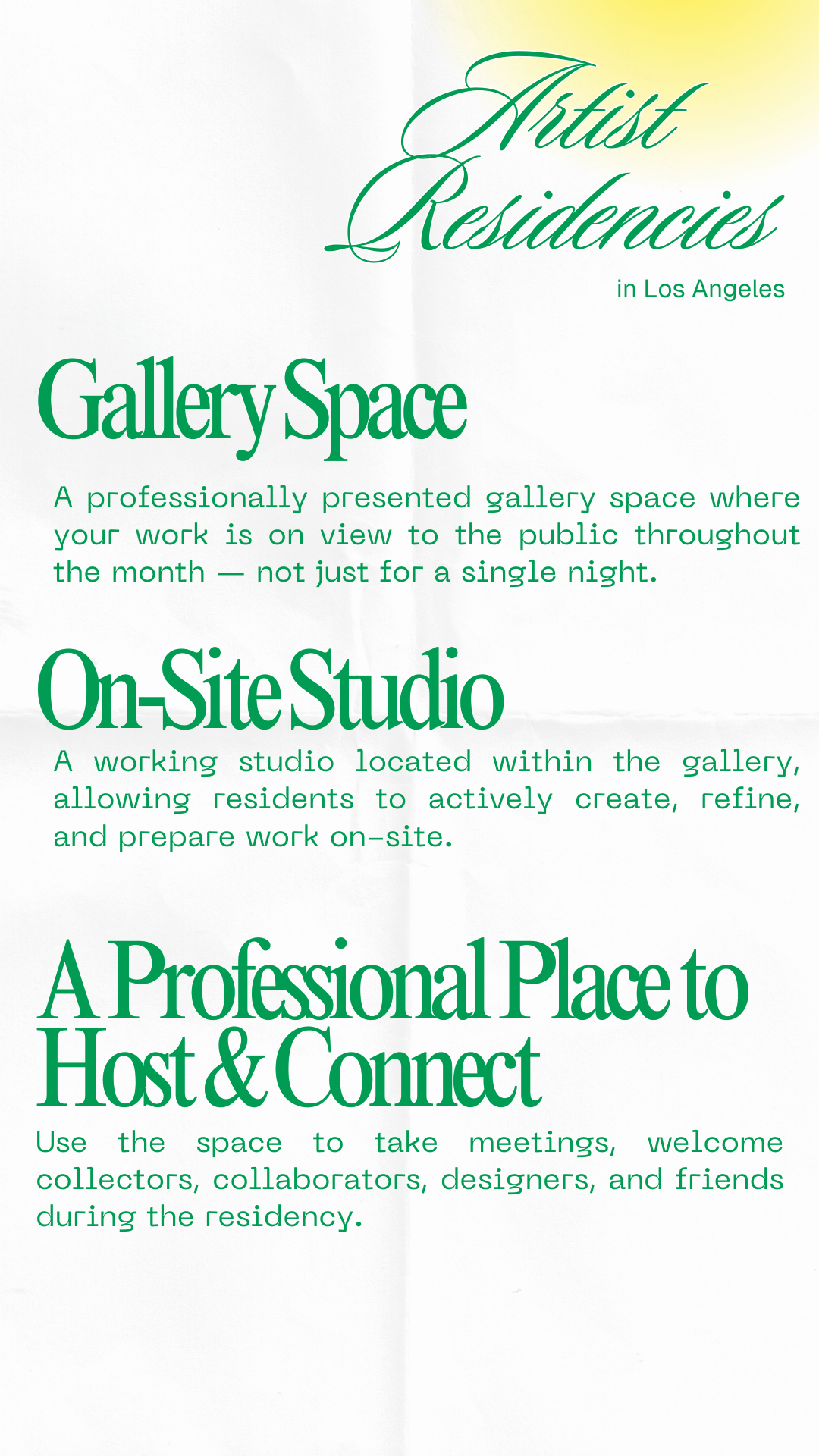A month-long gallery + studio residency for artists ready to be seen, work, and invite the world in. This opportunity is ideal for artists wanting local visibility on a high-foot traffic street within a collaborative environment.