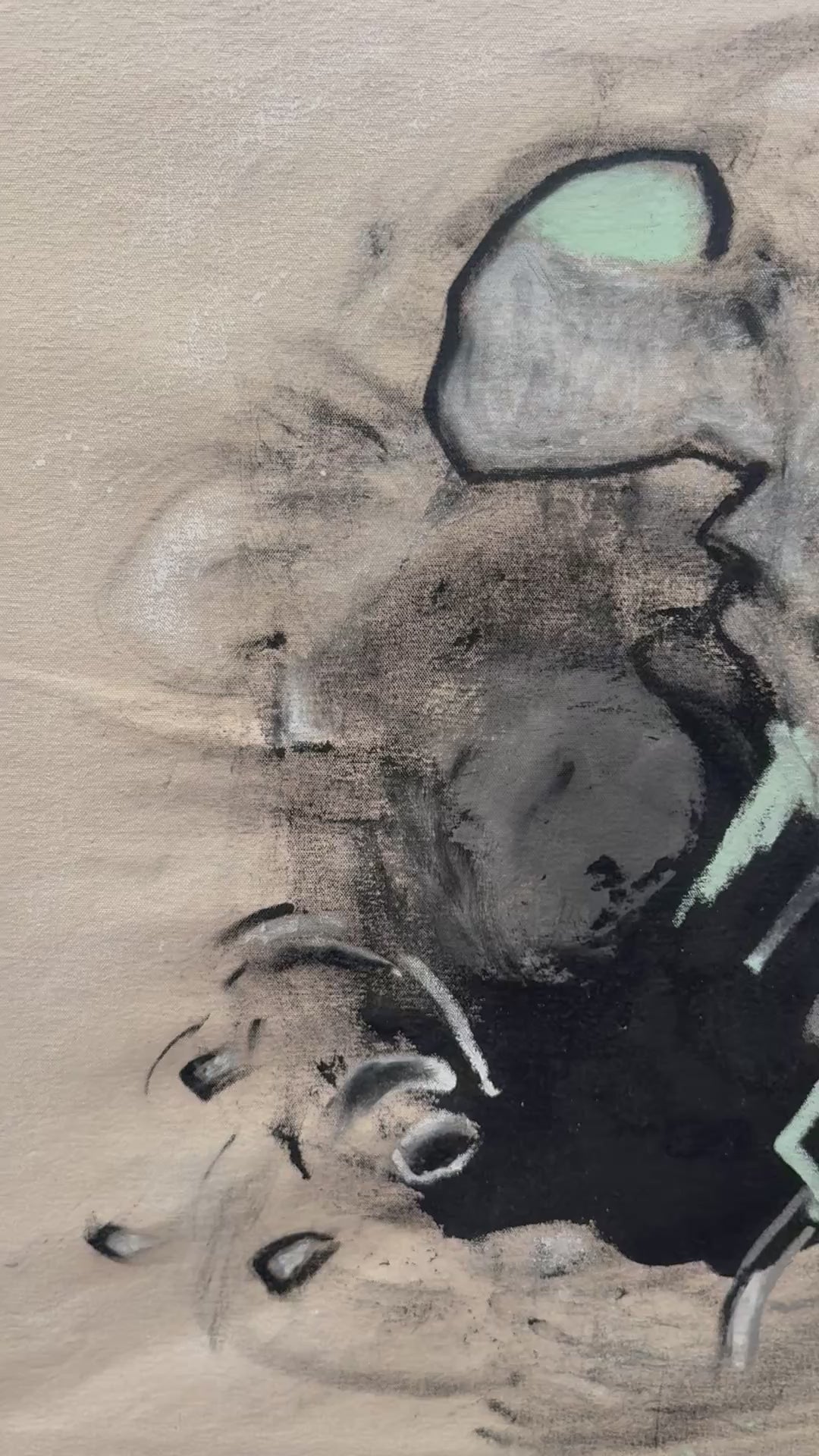 Cacho Falcón’s practice began with a self-portrait project in college, where he painted personal narratives onto denim instead of using traditional materials. This early exploration of wearable storytelling developed into a multidisciplinary body of work that includes customized fashion, body painting, and performance, often exploring themes of memory, trauma, identity, and healing. Over time, his process shifted from structured narratives to a more intuitive approach; today, his abstract works incorporate his feet as an extension of the body’s movement, focusing on color, texture, and gesture as expressive tools.